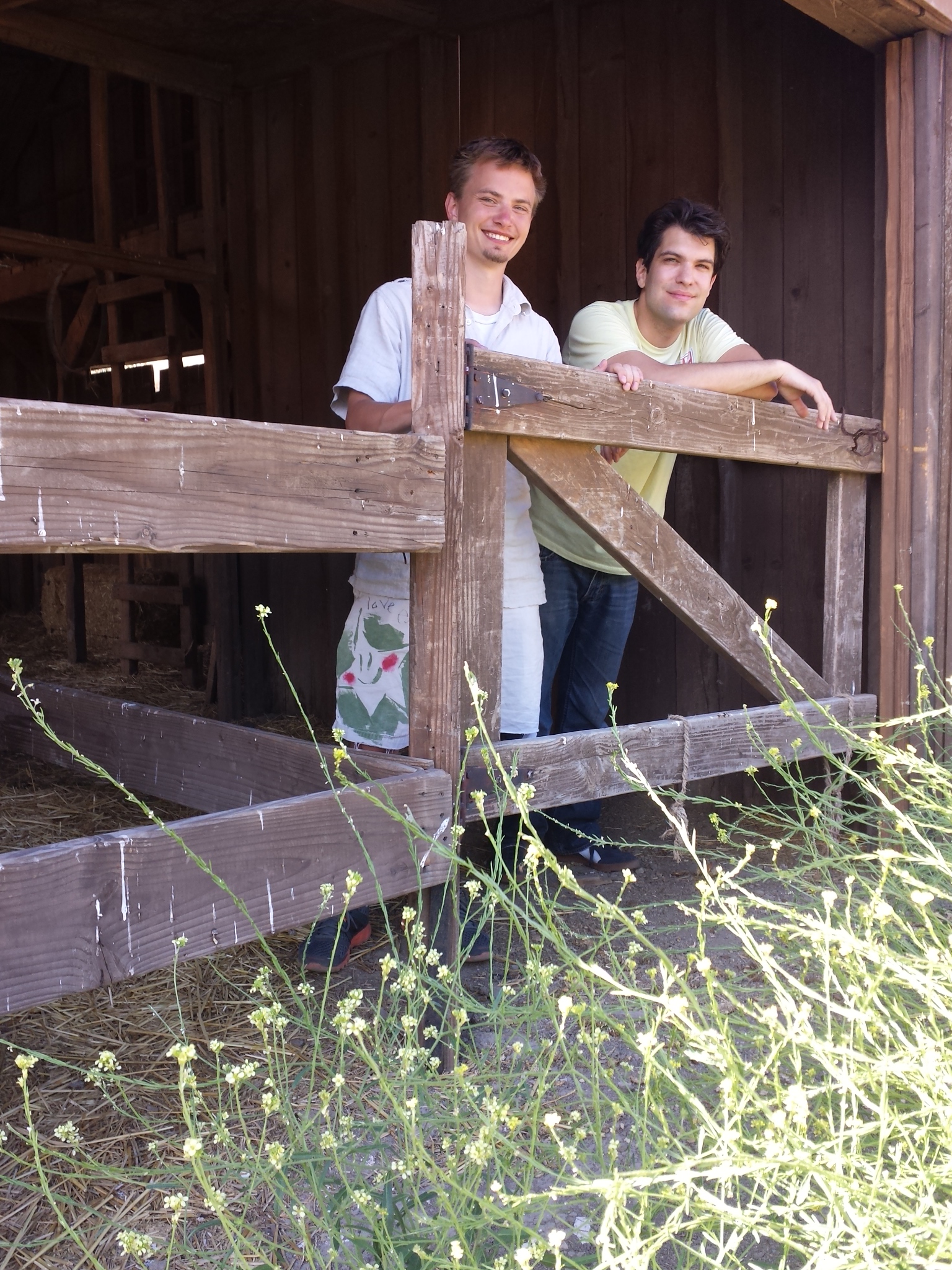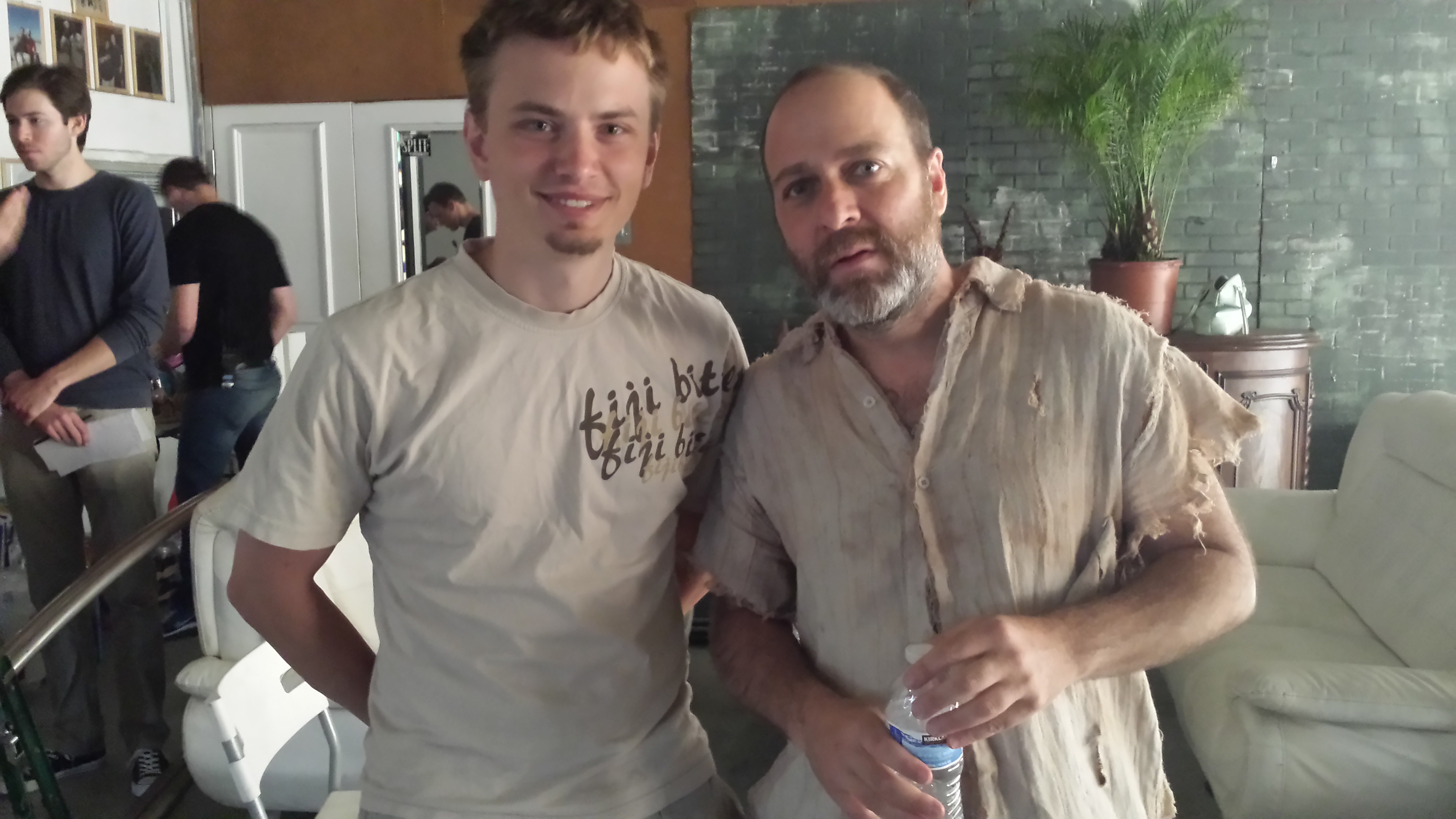 Me and Dan Mintz in the writer’s pen waiting to get fed.